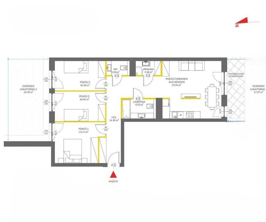 The property includes two gardens: 17.37 m² and 23.39 m²:
