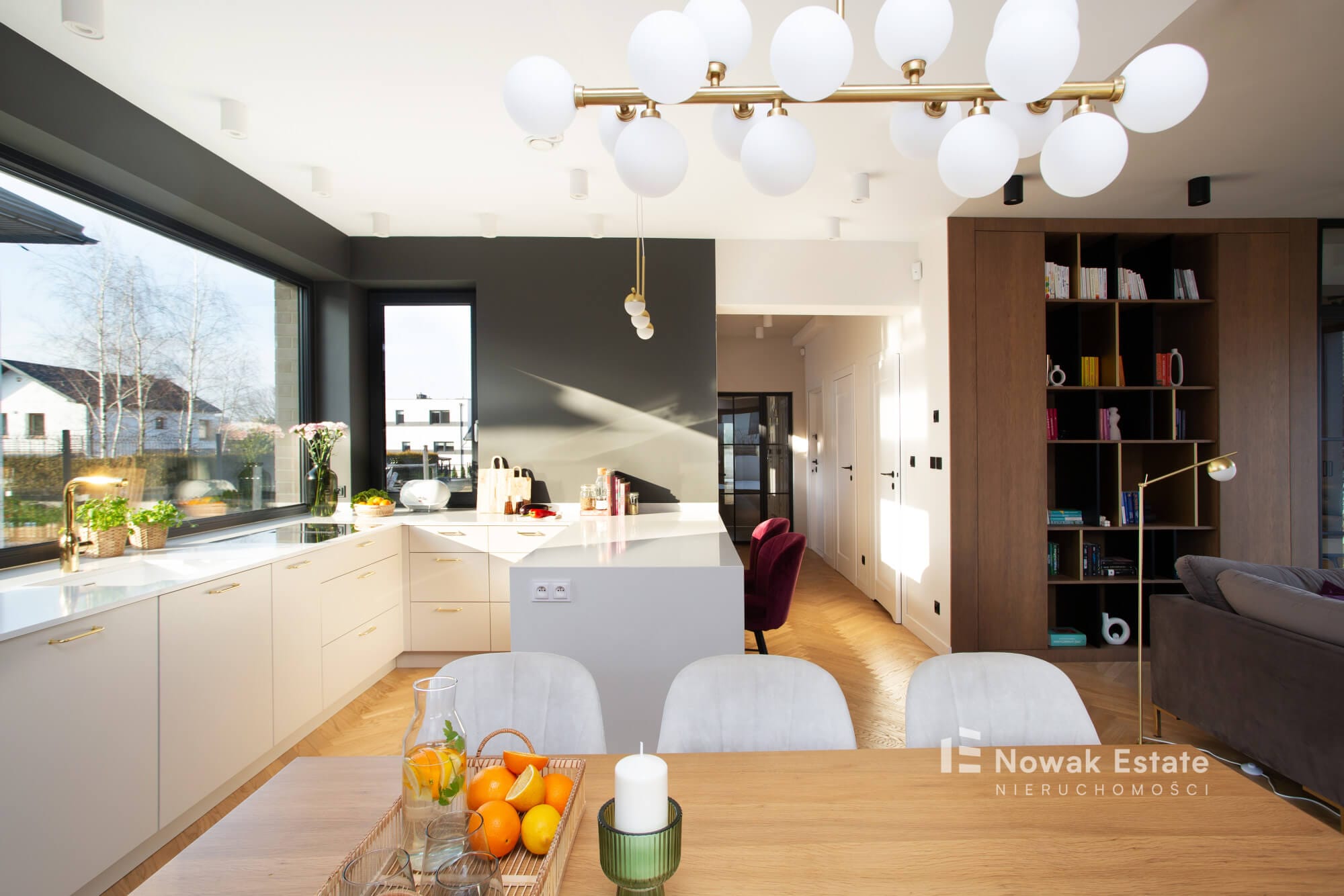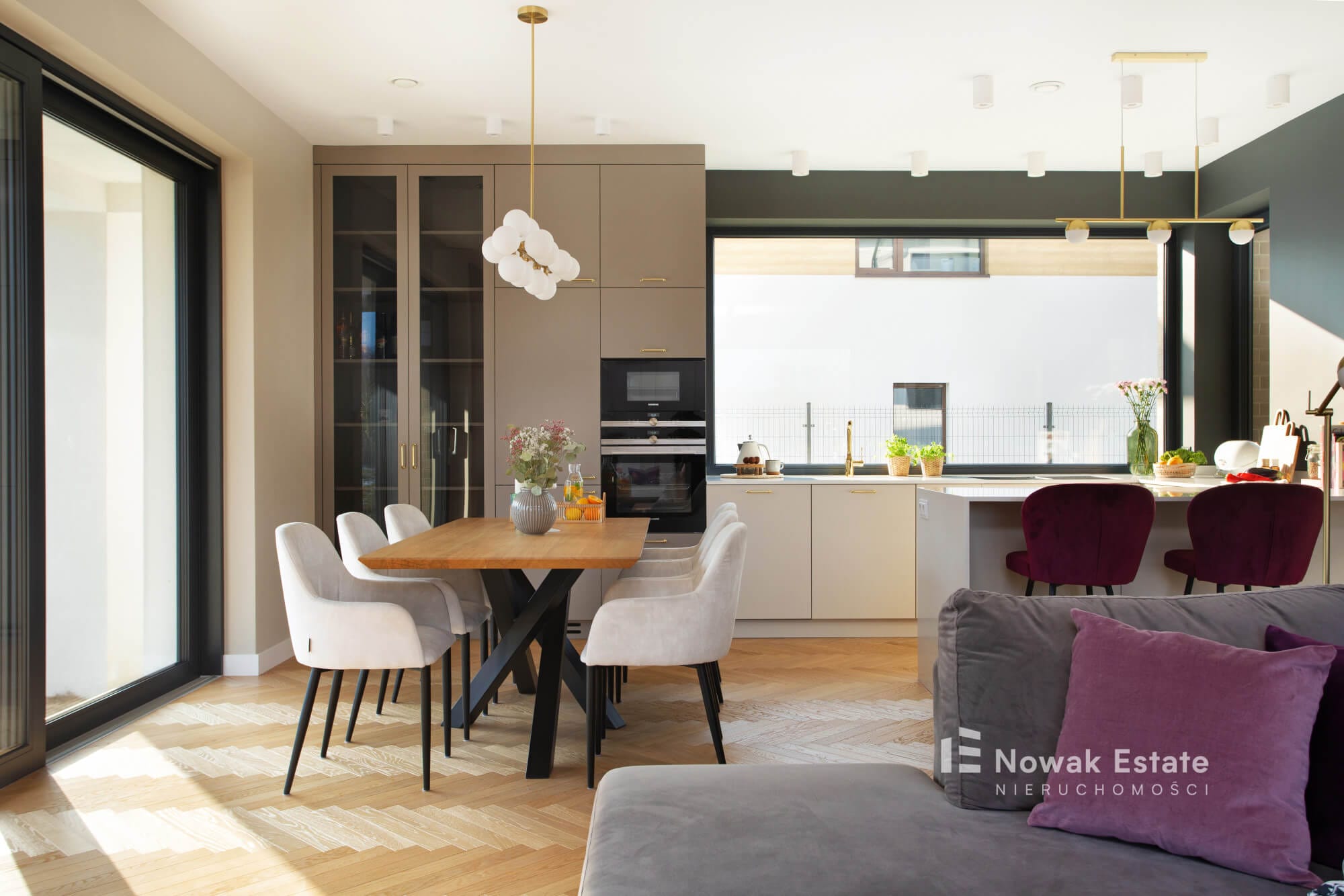Duże przeszklenia wprowadzają do wnętrza mnóstwo naturalnego światła, tworząc przytulną, nowoczesną atmosferę.