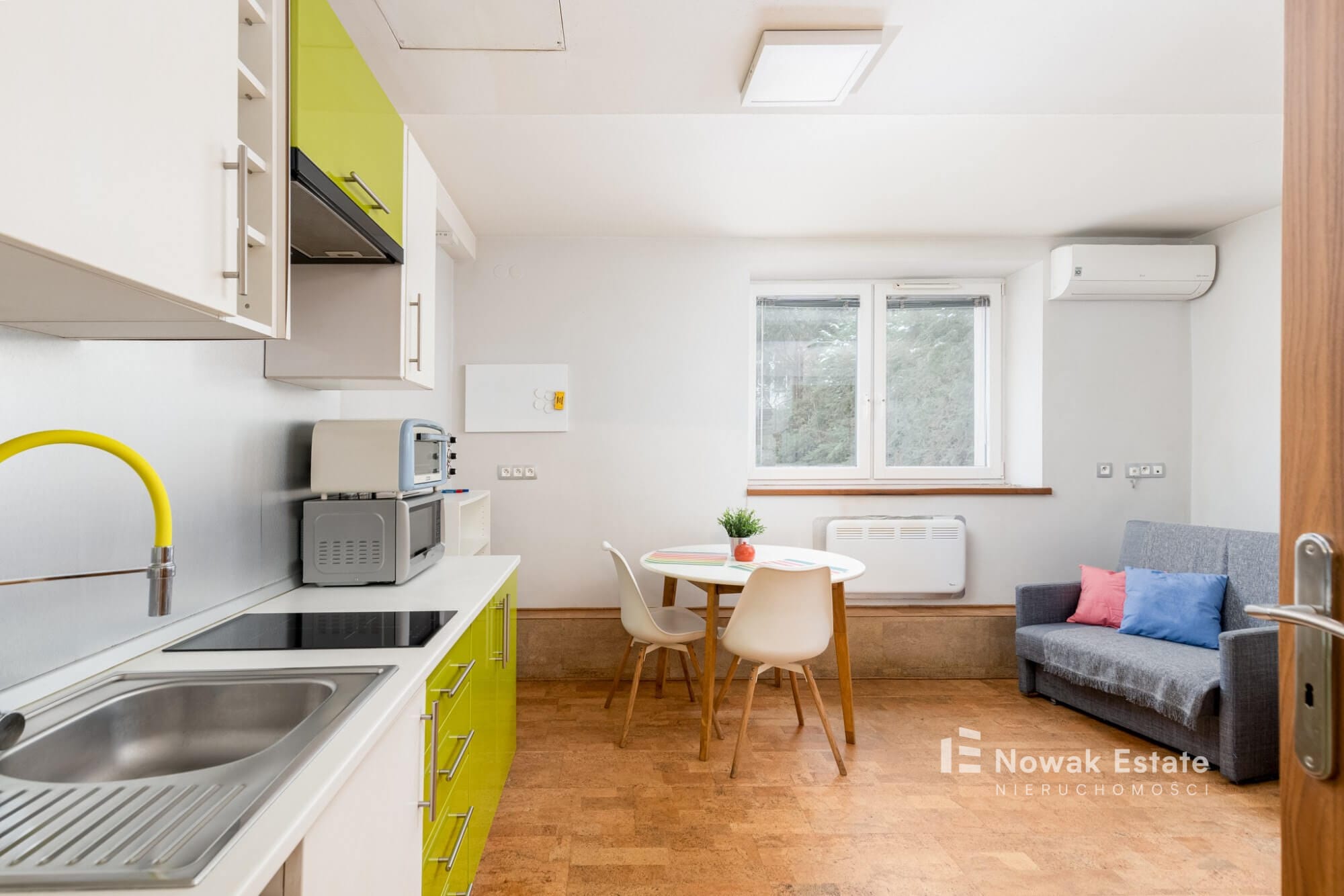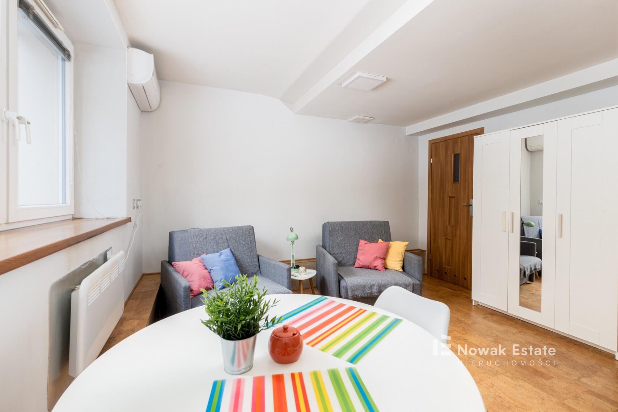 Ogrzewanie: elektryczne – klimatyzator i grzejnik elektryczny.