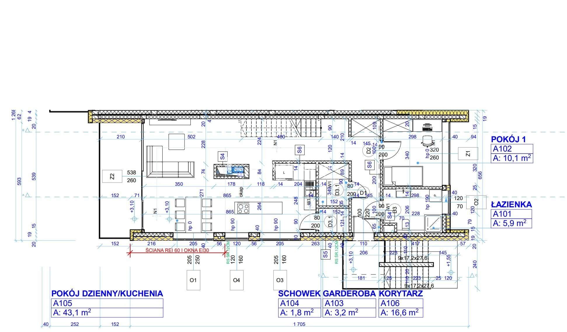 poziom 1-szy powierzchnia 80 m2