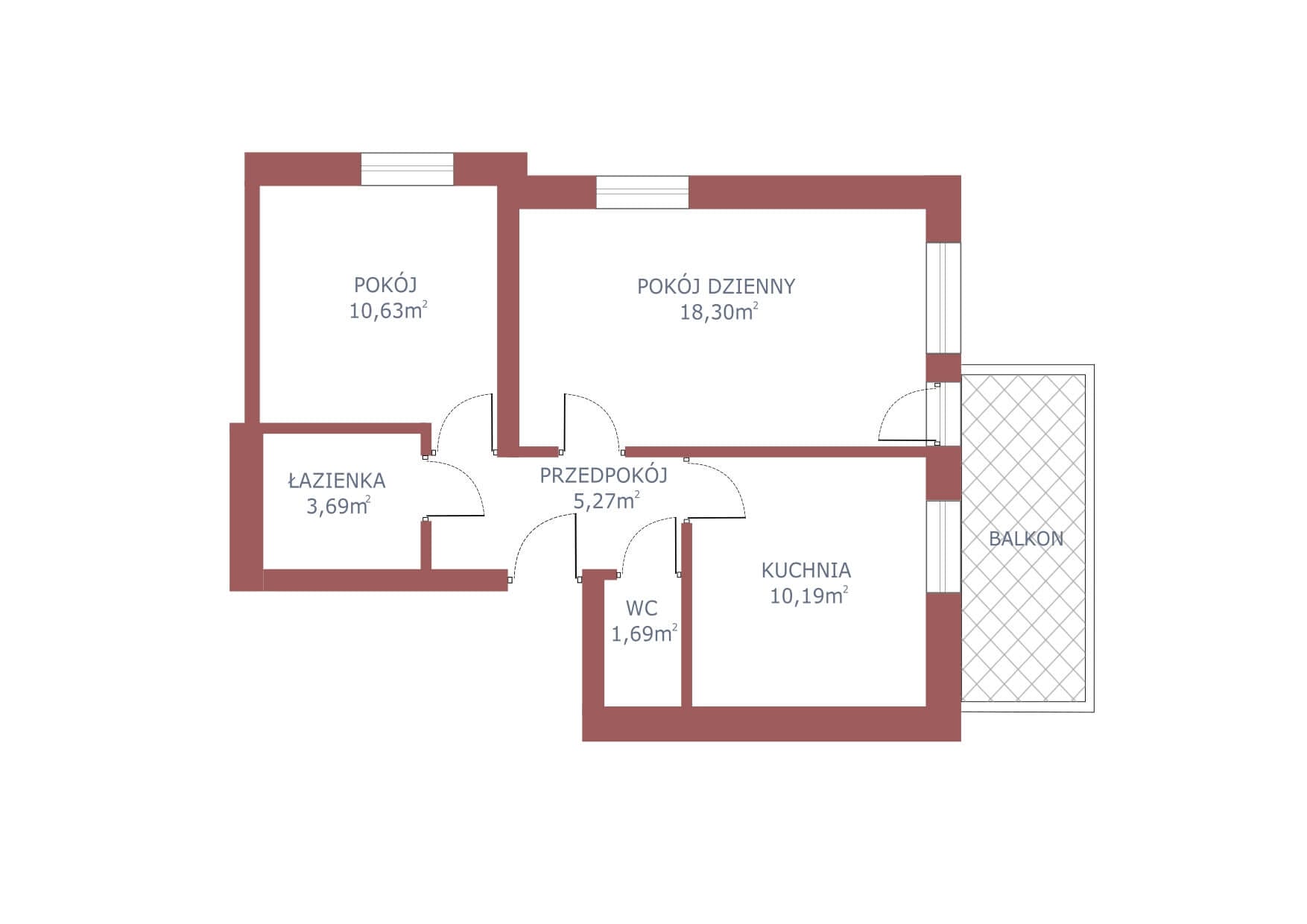 - łazienka – 3,69 m²
